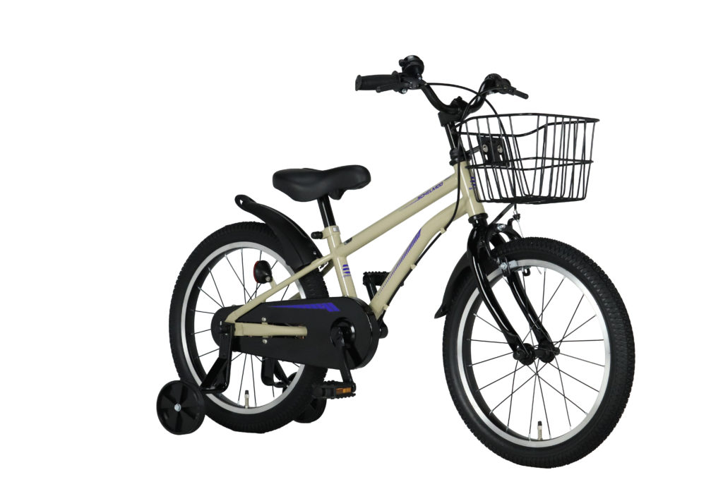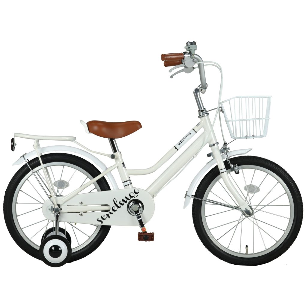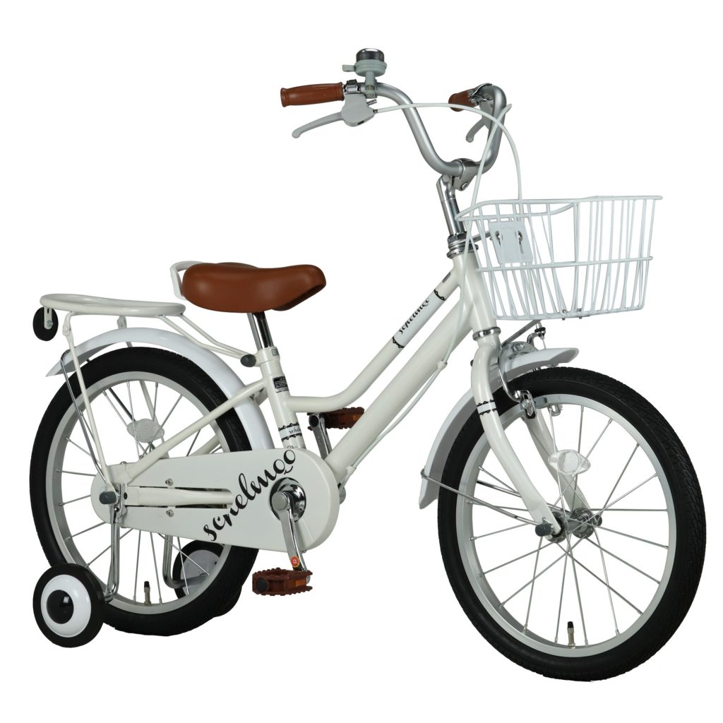 特徴的なS型フレーム、前後樹脂製ホワイト泥除け装備の幼児車